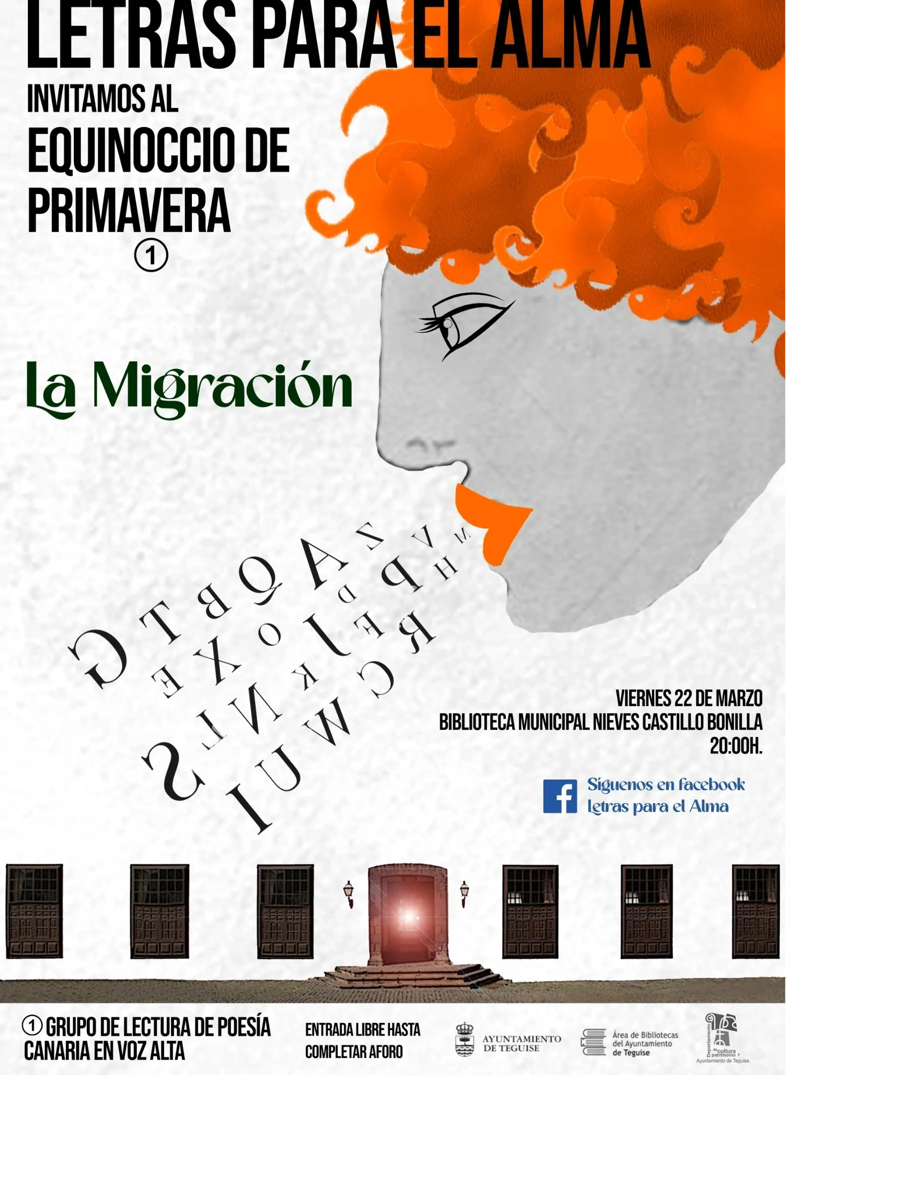 El próximo viernes 22 de marzo, a las 20:00 h. se celebrará el EQUINOCCIO DE PRIMAVERA, un evento fantástico dedicado a la lectura en torno a La Migración. Estaba previsto el acto en la Biblioteca Municipal Nieves Castillo Bonilla, de la Villa de Teguise, pero finalmente se realizará en el Museo del Timple.