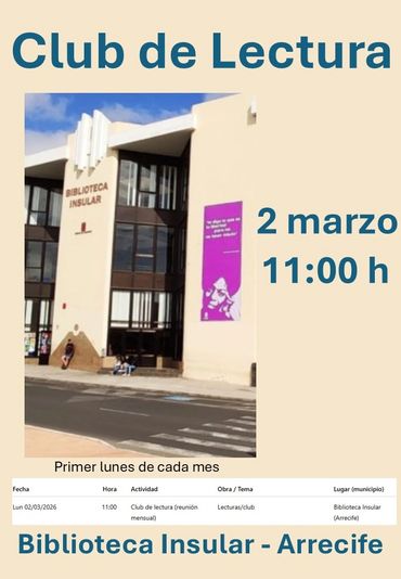 Todos los primeros lunes de cada mes, a las 11:00 h, se reune el Club de Lectura en la Biblioteca Insular: