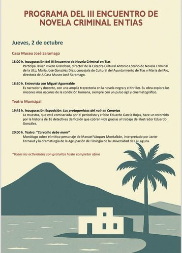 El 27 de mayo, a las 18:00 h, en el Teatro Municipal de Tinajo, y dentro del proyecto Identitaria de Cultura del Gobierno de Canarias, diferentes profesionales debaten sobre un tema central que en esta ocasión será la Literatura.