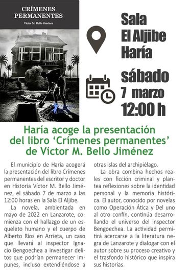 Si quieres anunciar la presentación de una obra, conferencia, evento o taller literario escríbenos a escritoresdelanzarote@gmail.com